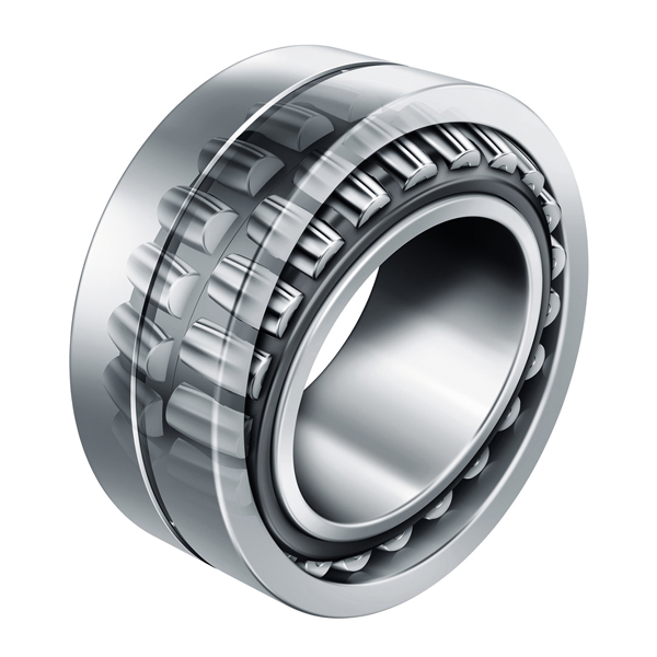 球面滚子轴承有两列对称滚子,外圈有一个共用的球面滚道,内圈有两个滚道,与轴承的垂直轴线成某一角度。 外圈球面滚道的球心位于轴承轴上。